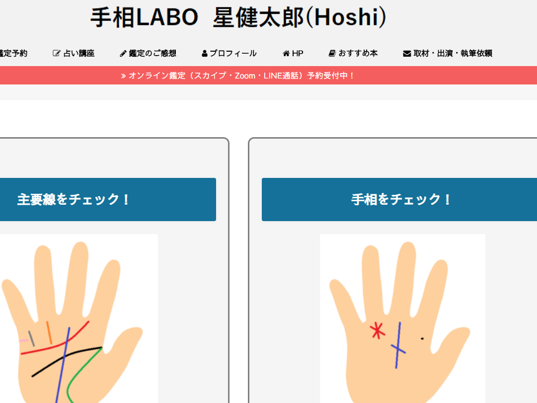 手相占いを中心に開運情報やイベント・講座などの活動情報を発信するメインブログ